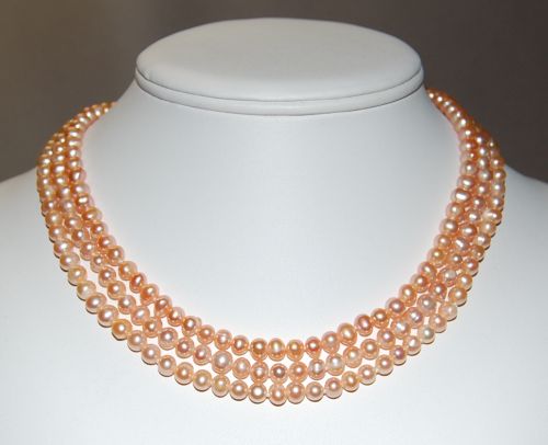 18-19 inch -- 5-6 MM three rows peach Fresh Water Pearl necklace