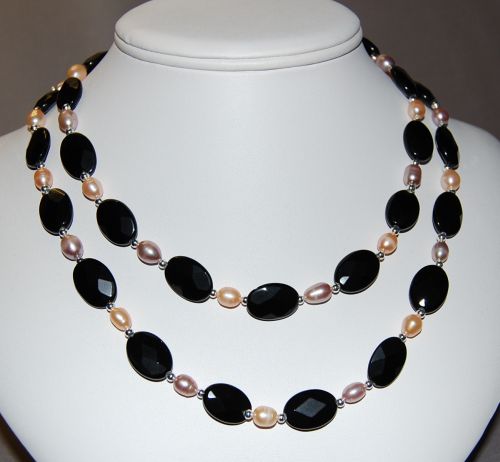 17-19 inch -- Two rows Fresh Water Pearl & Crystal Necklace