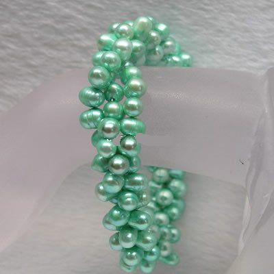 7.5 inch -- 3 rows green Fresh Water Pearl bracelet (pearl size: 6-7 MM)