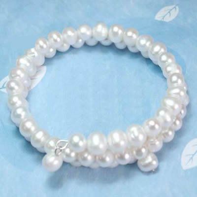 7.5 inch --2 rows white Fresh Water Pearl bracelet (purple size: 6-7 MM)
