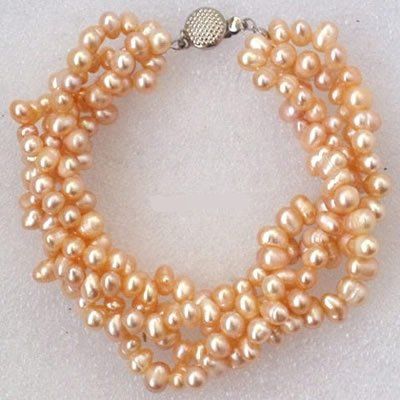 7.5 inch -- 3 rows nature pink Fresh Water Pearl bracelet (pearl size: 5-6 MM)