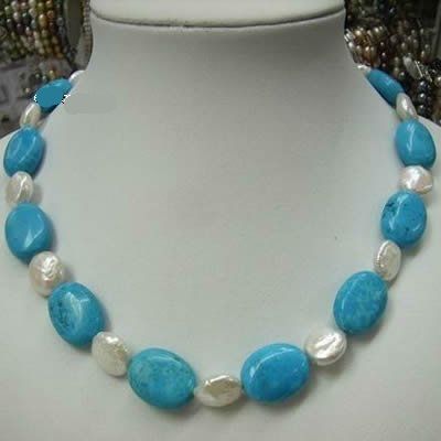 18 inch -- white coin Fresh Water Pearl & turquoise necklace