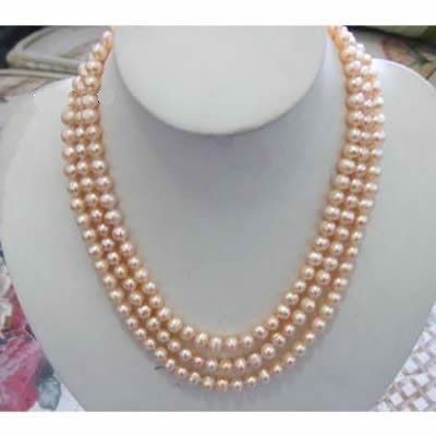 17-19 inch -- 6-7 MM -- 3 rows pink Fersh Water Pearl necklace