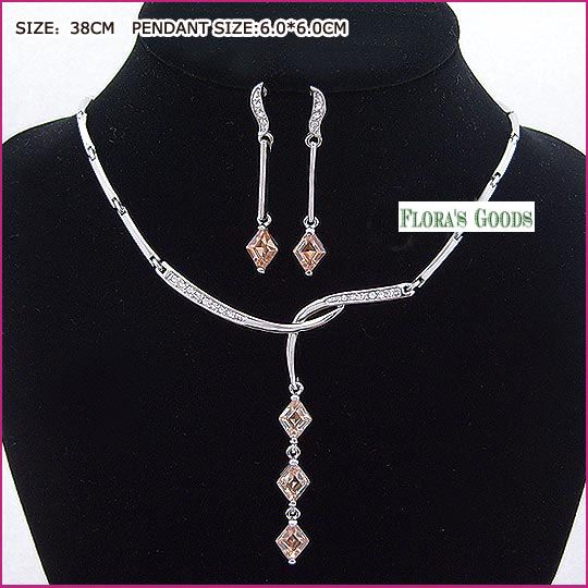 3 diamond shape Cubic Zirconia stones in champage colour necklace sets