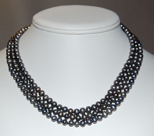 18-19 inch -- 5-6 MM three rows black Fresh Water Pearl necklace