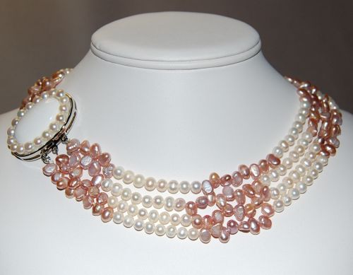 17 inch four rows of white and pink Fresh Water Pearl necklace