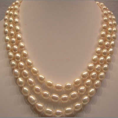 8-9 MM -- 3 rows -- white Fresh Water Pearl necklace