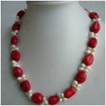 19 inch red coral & white Fresh Water Pearl necklace