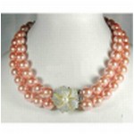 17-18 inch -- 2 rows pink shell pearl necklace in pink - flower shell clasp (pearl size: 12 MM)