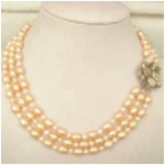 17-19 inch -- 3 rows rice-shaped & round Fresh Water Pearl necklace